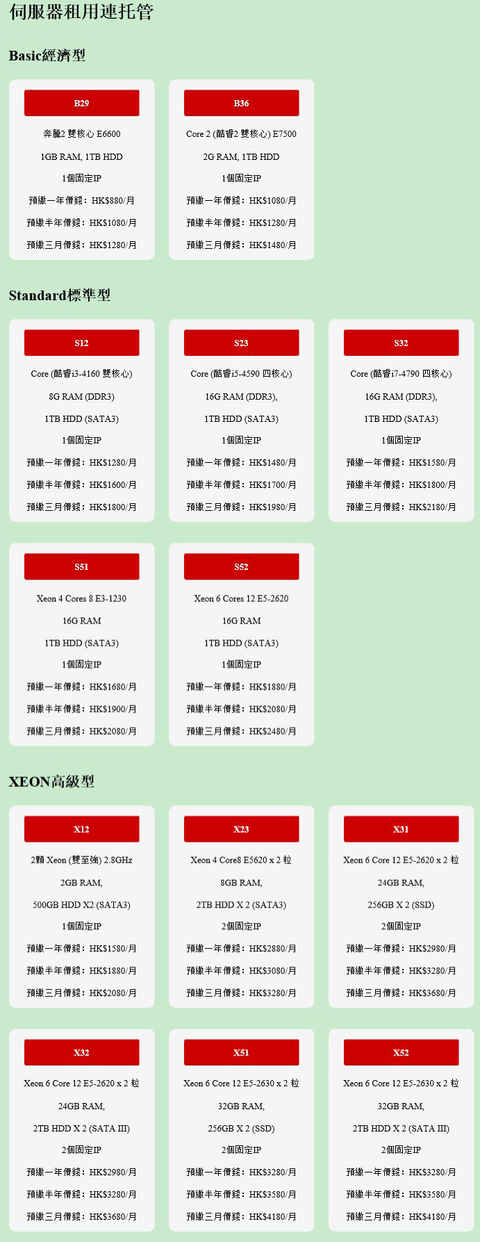 (1) 如要在伺服器加設多一個硬碟,每月收費爲港幣$200。更改其他配置,請與我們聯絡報價。